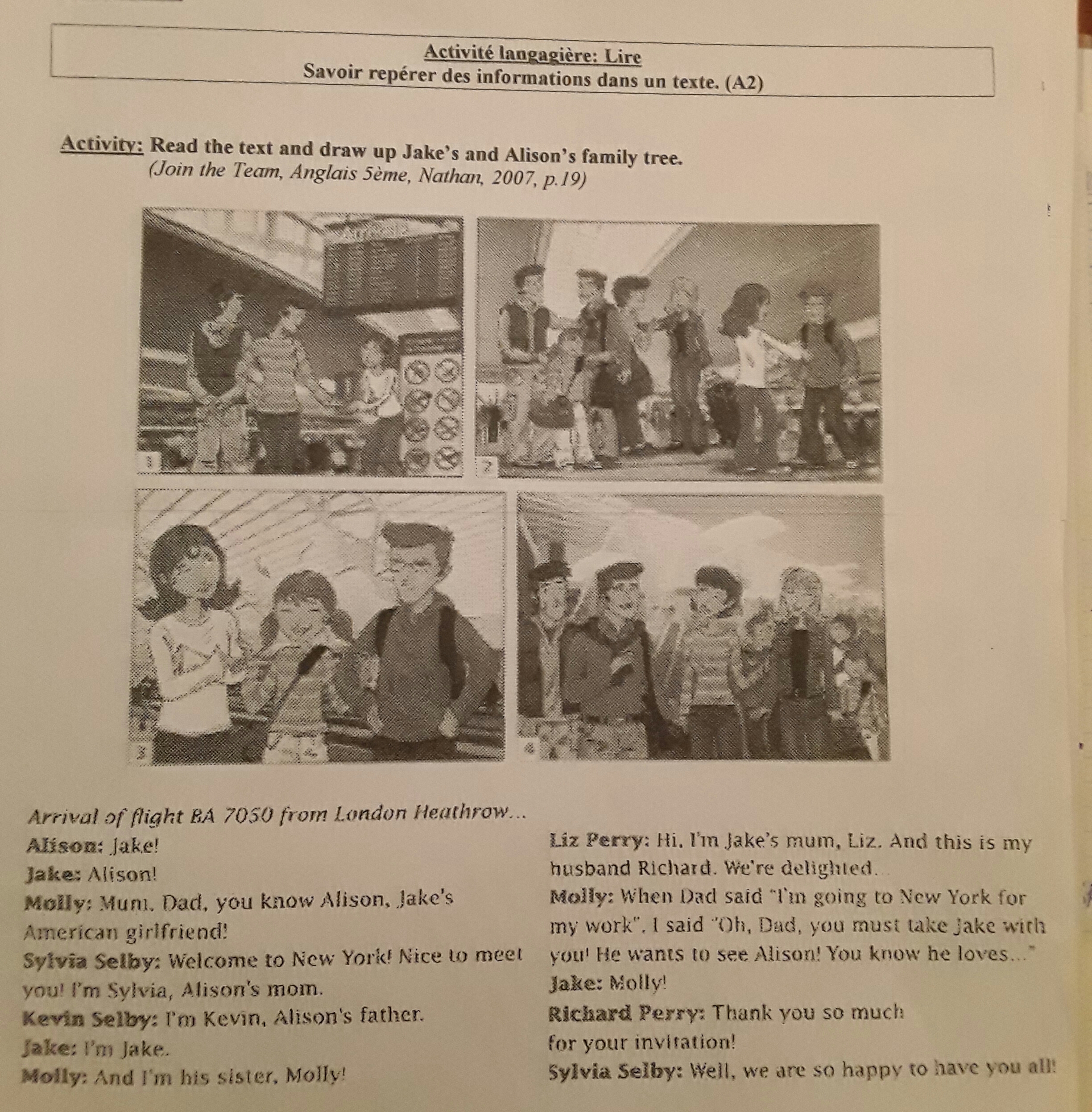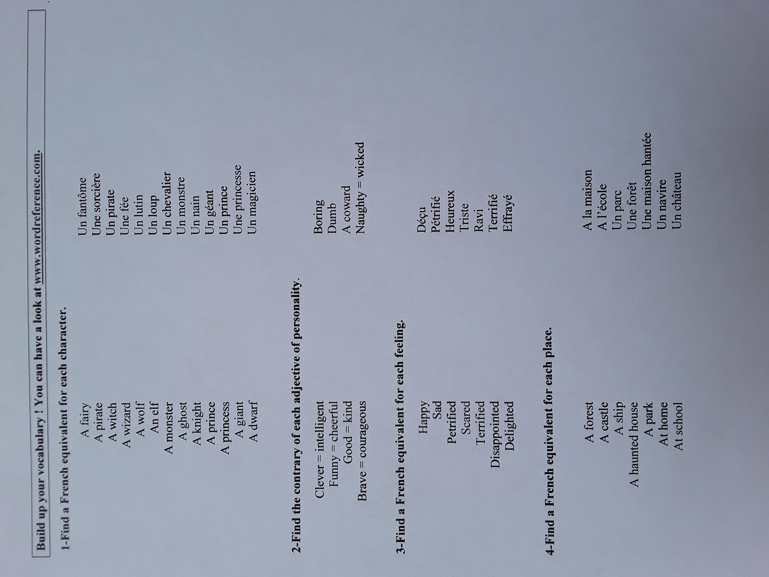 Cours 1 annonce du theme de la final task et du lexique des personnages