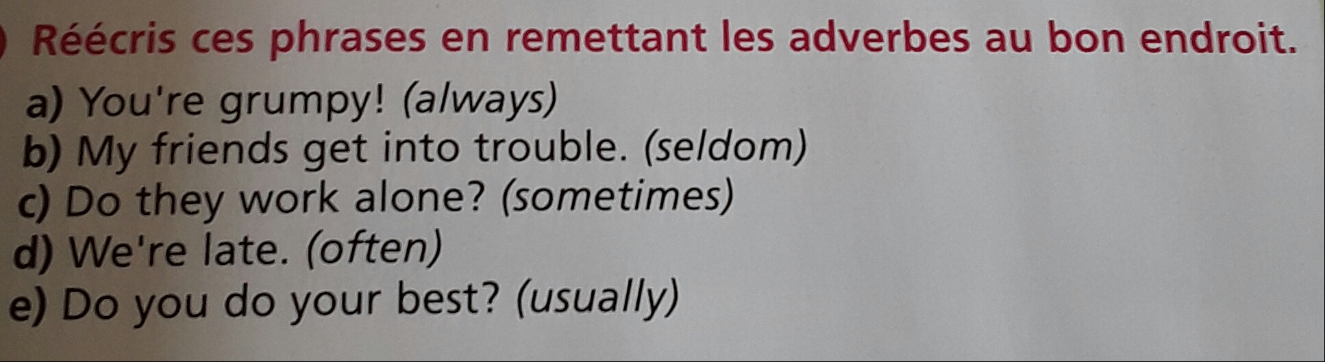 Bonus exercices 3 de thumbs up 5e nathan 2018 p 51 2