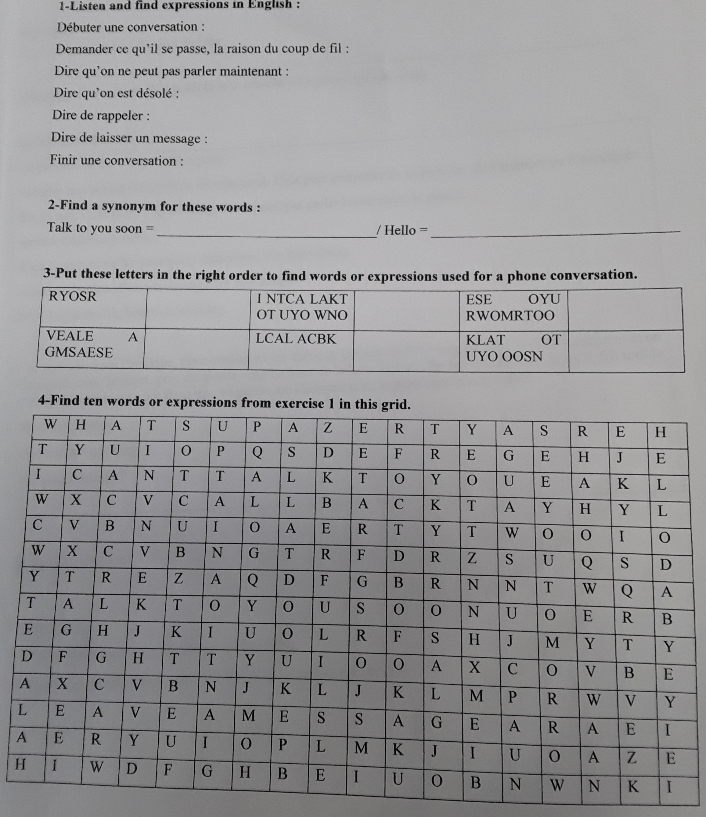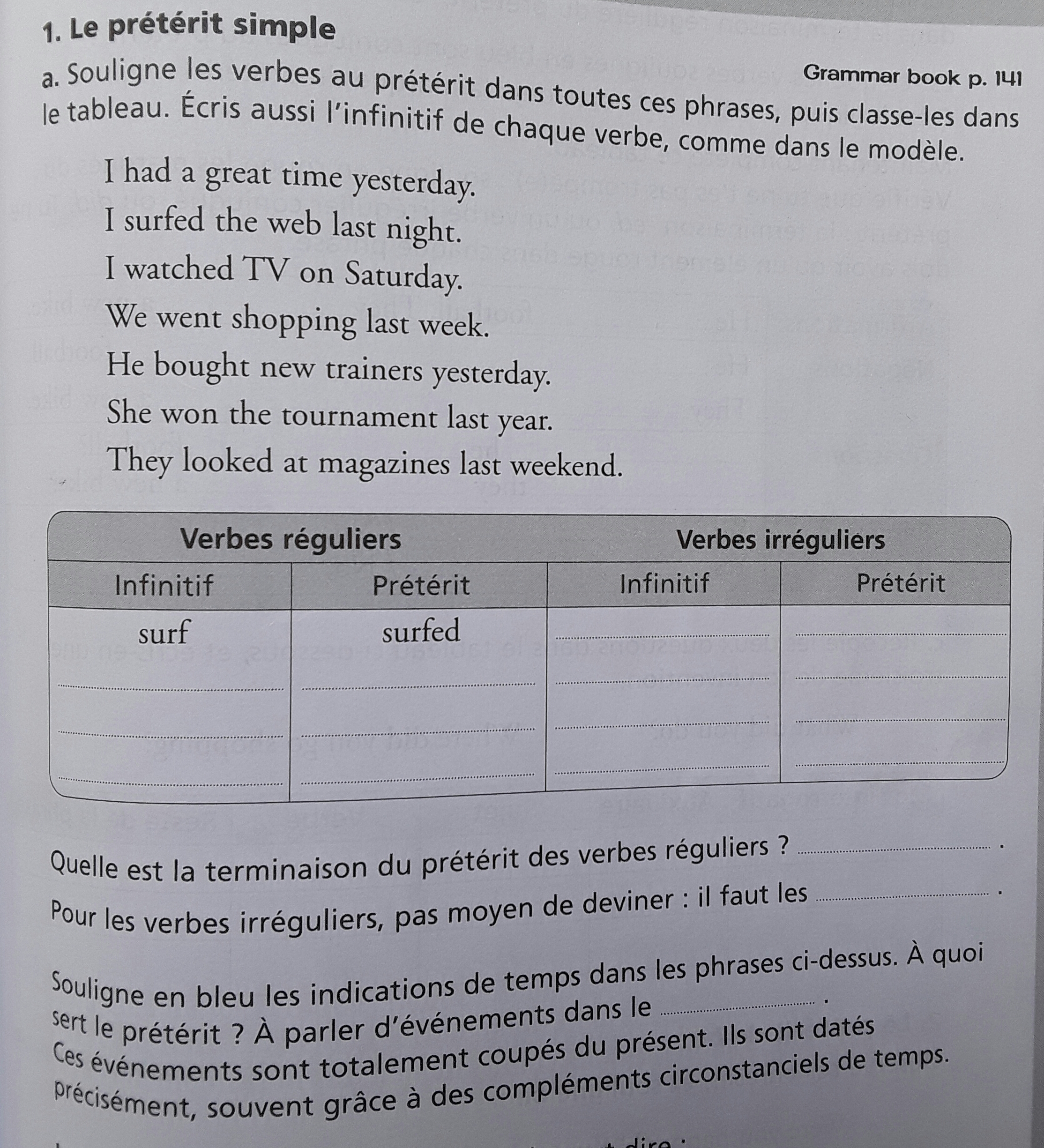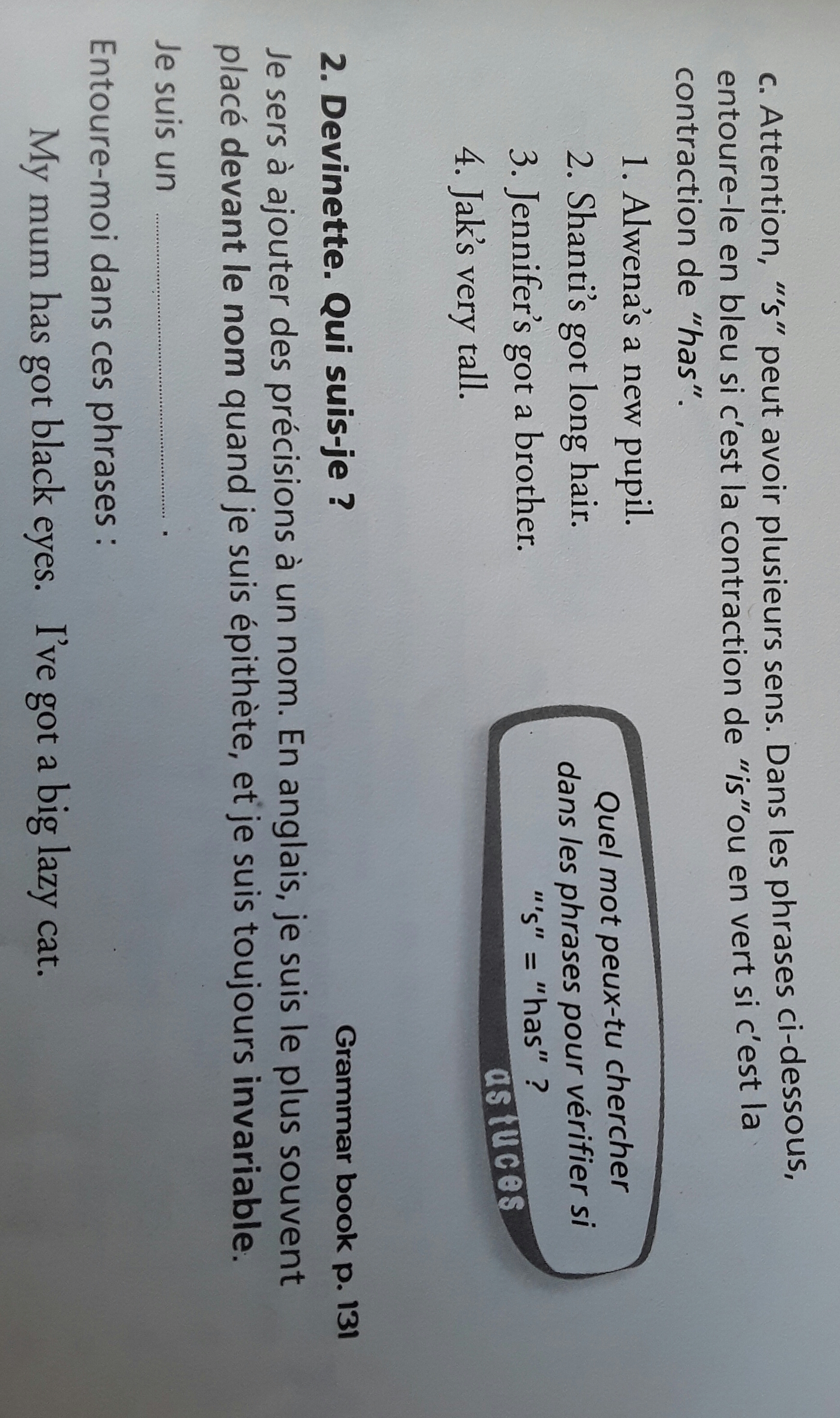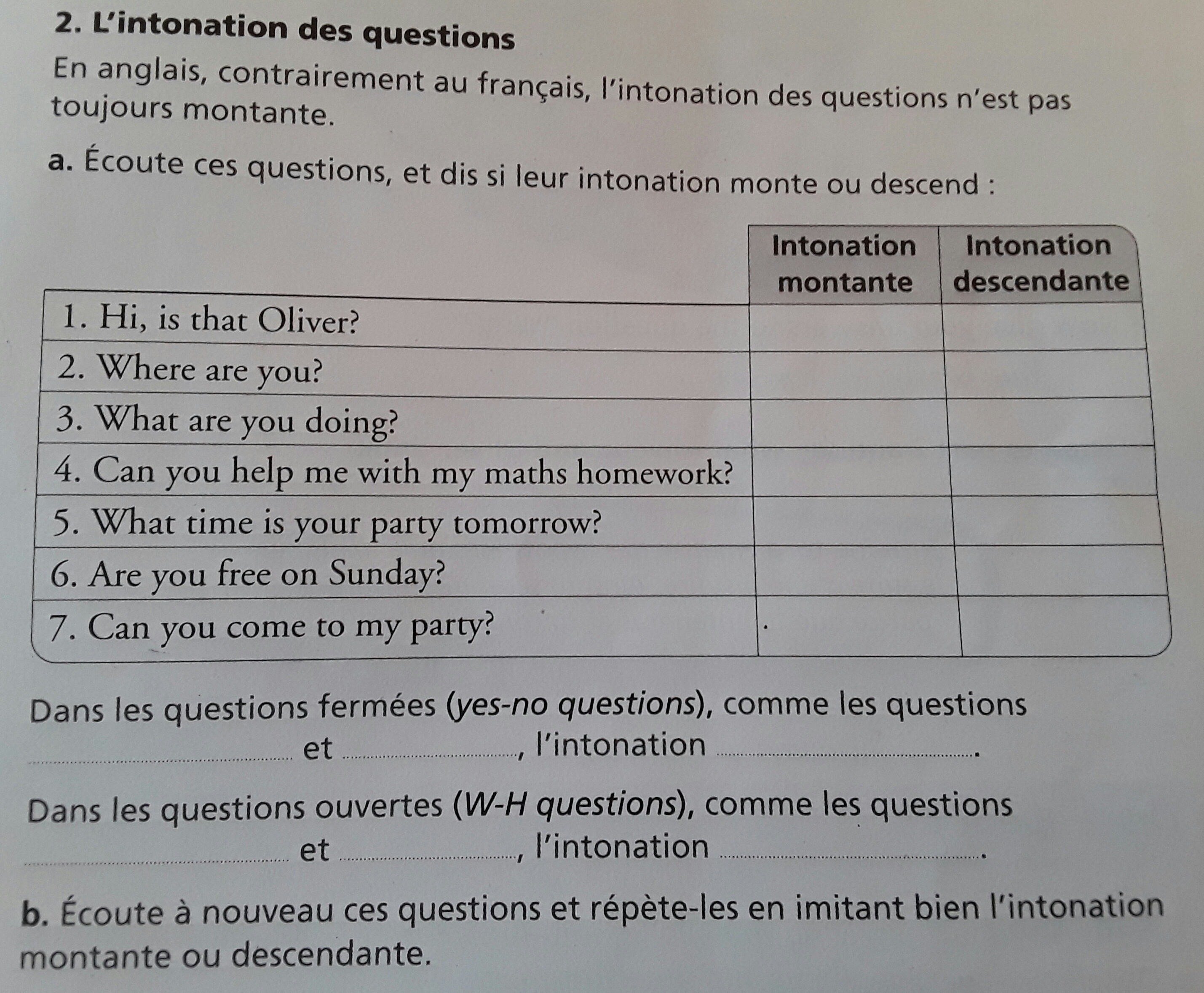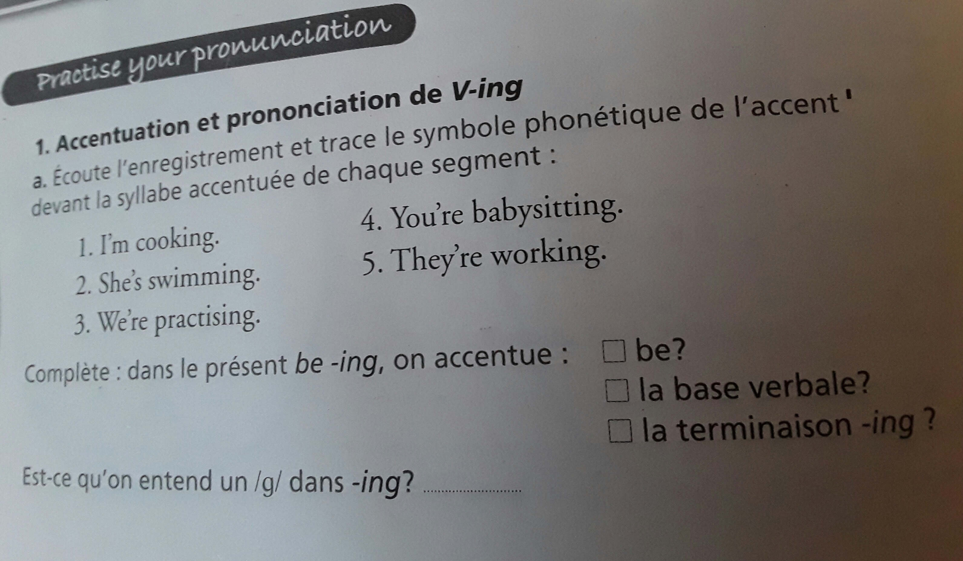 Bonus exercices 1 et 2 de thumbs up 5e nathan 2018 p 51 1