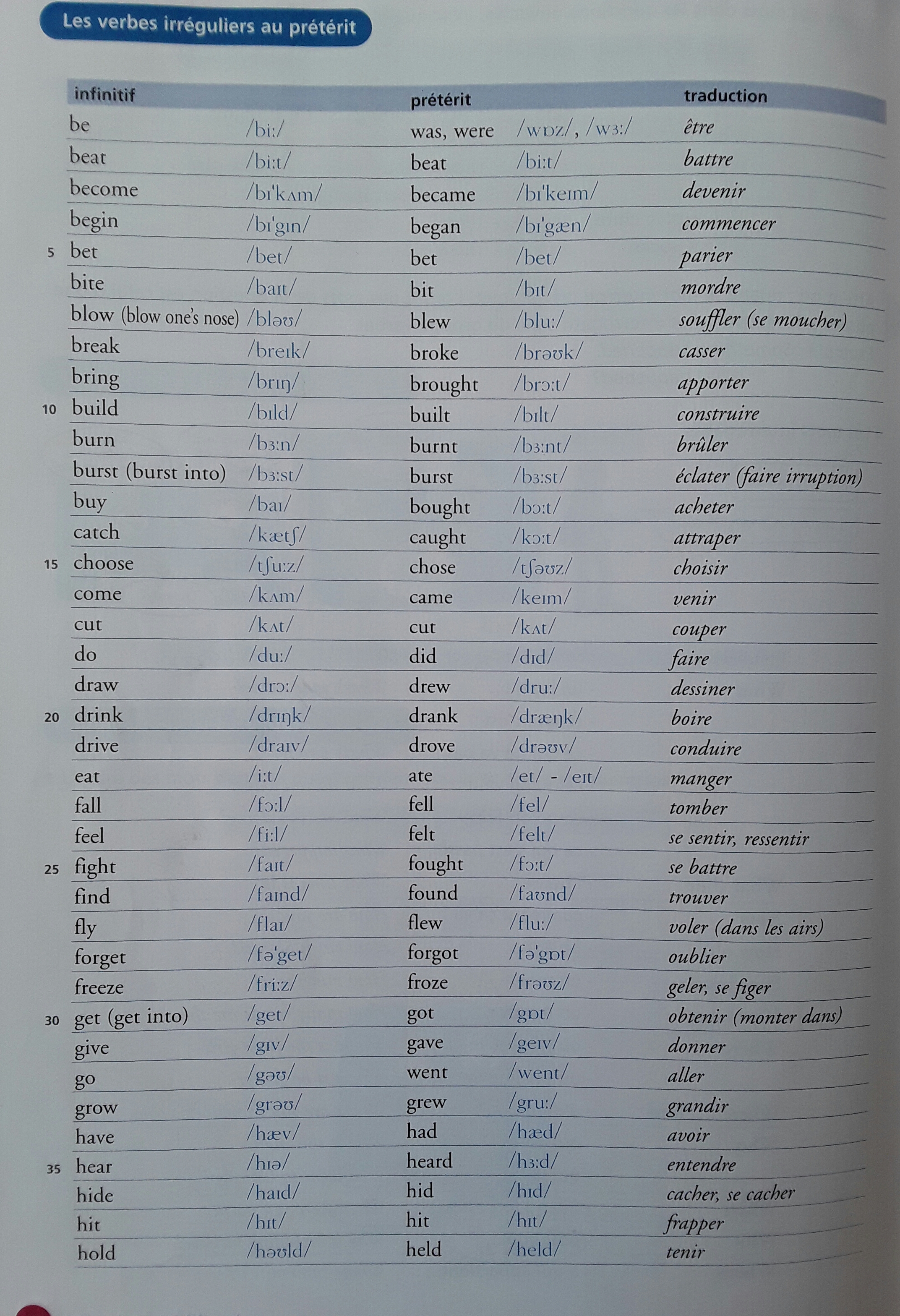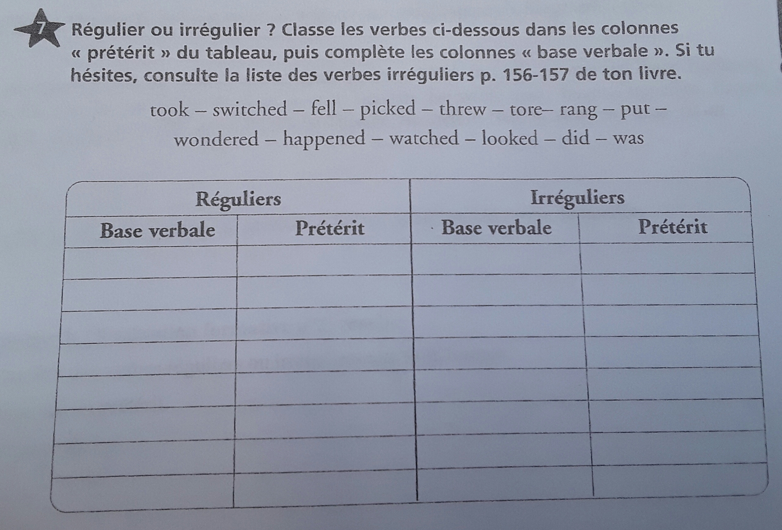 Classer les verbes au preterit en verbes reguliers ou en verbes irreguliers